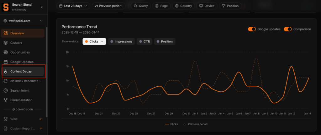 That’s why we built Search Signal. Here’s a step-by-step on how you can find content decay: